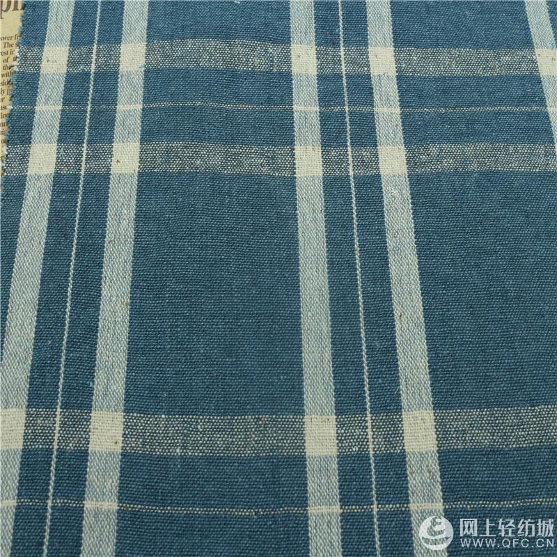 现货全亚麻梭织色织格子面料衬衫裙装面料服装面料轻薄时尚棉麻布