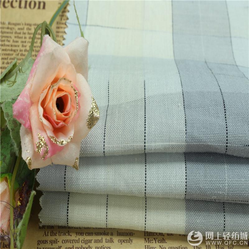 现货梭织色织格子面料 衬衫裙装面料 服装面料轻薄时尚棉麻布