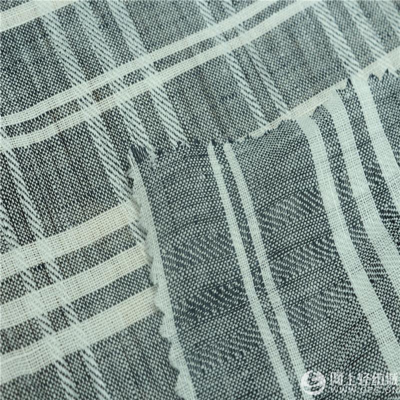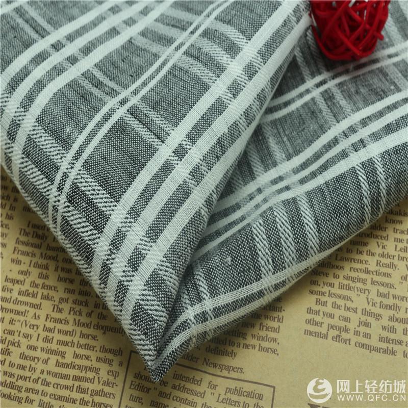 现货全亚麻梭织色织格子面料衬衫裙装面料服装面料轻薄时尚棉麻布